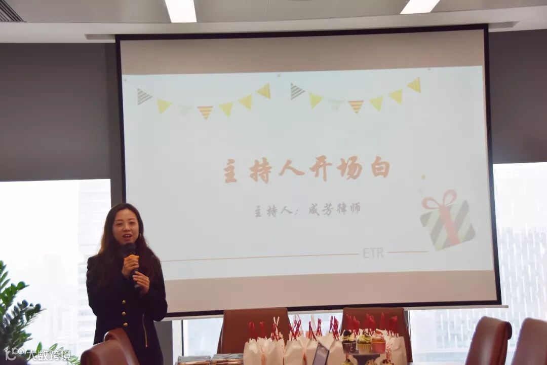 执行副总监江晓璐律师向寿星们送上生日祝福和表达美好祝愿,随后与赞助单位合润担保为大家送上了贴心的小礼物。大家一同点燃蜡烛,齐唱生日歌、许愿、吹蜡烛并互送生日祝福,将气氛再次推上高潮。