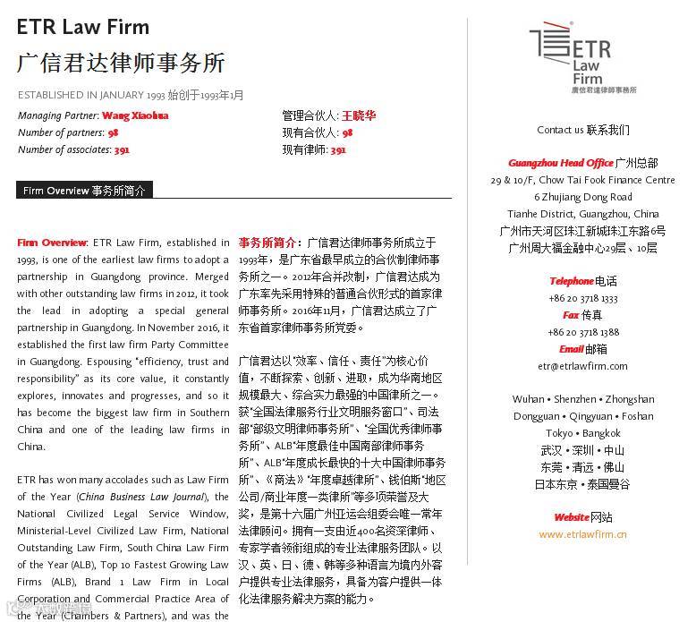 近日,广东广信君达律师事务所入选《商法》(中国)杂志第8辑第7期《商法名录》特刊“商法名录——中国律所名录”。