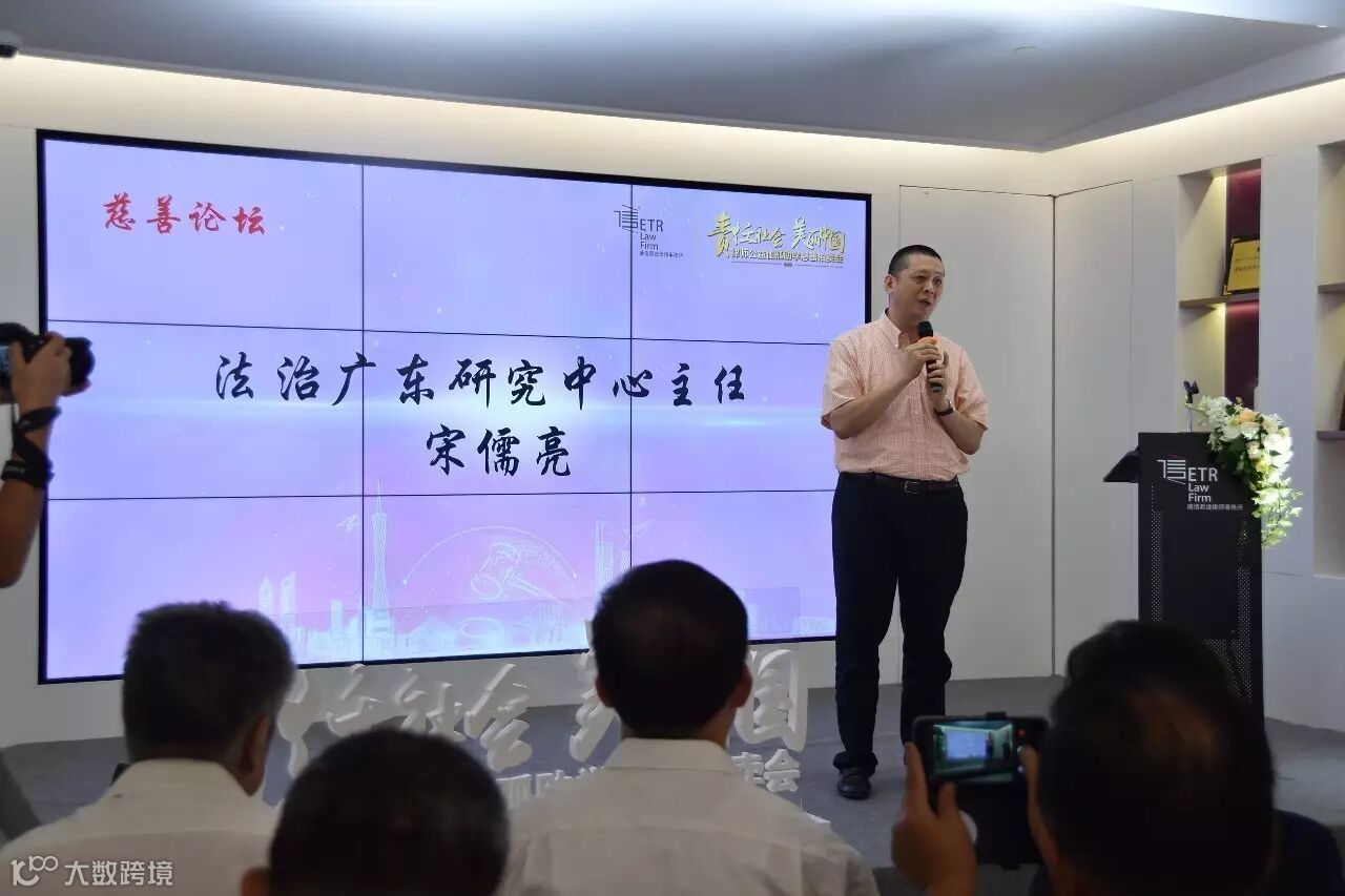 法治广东研究中心主任宋儒亮教授,以“法治思维方式助推慈善事业”为题,开始了慈善论坛讲座,从慈善法理论、国内外慈善法立法现状及如何运用法治思维和方式助推慈善事业等方面,与各位来宾进行了交流与探讨。