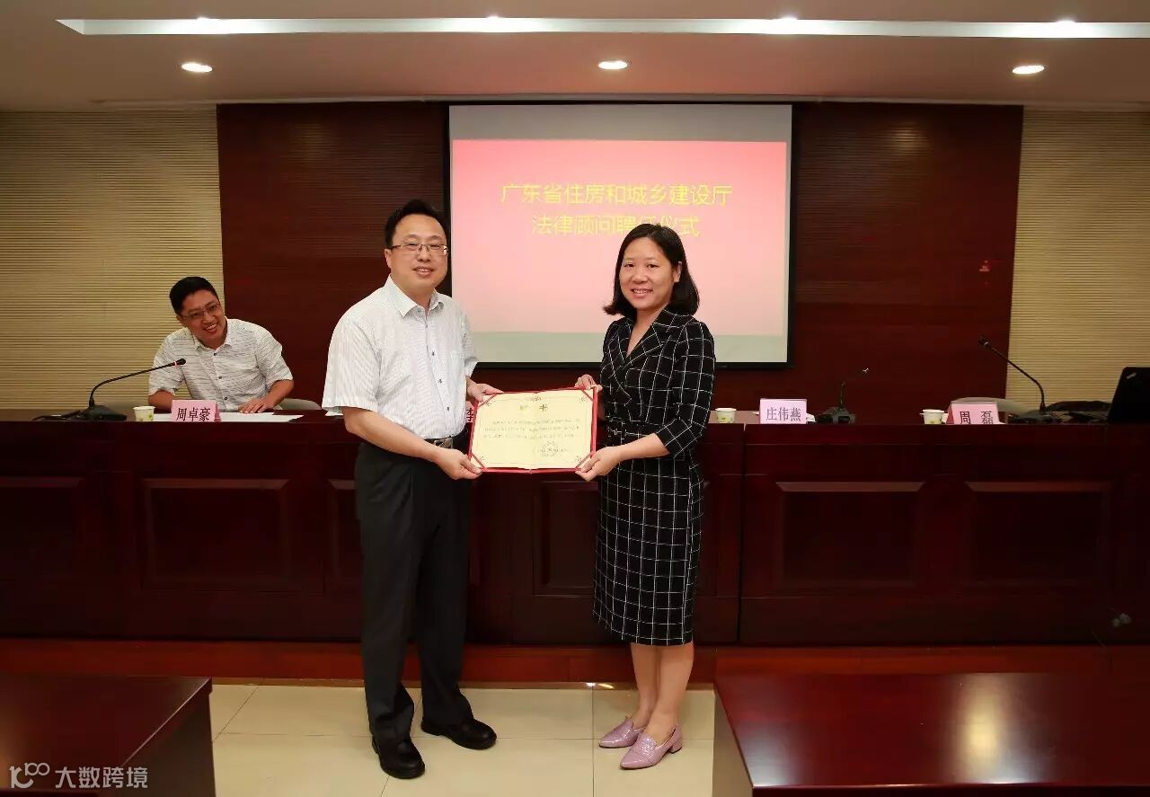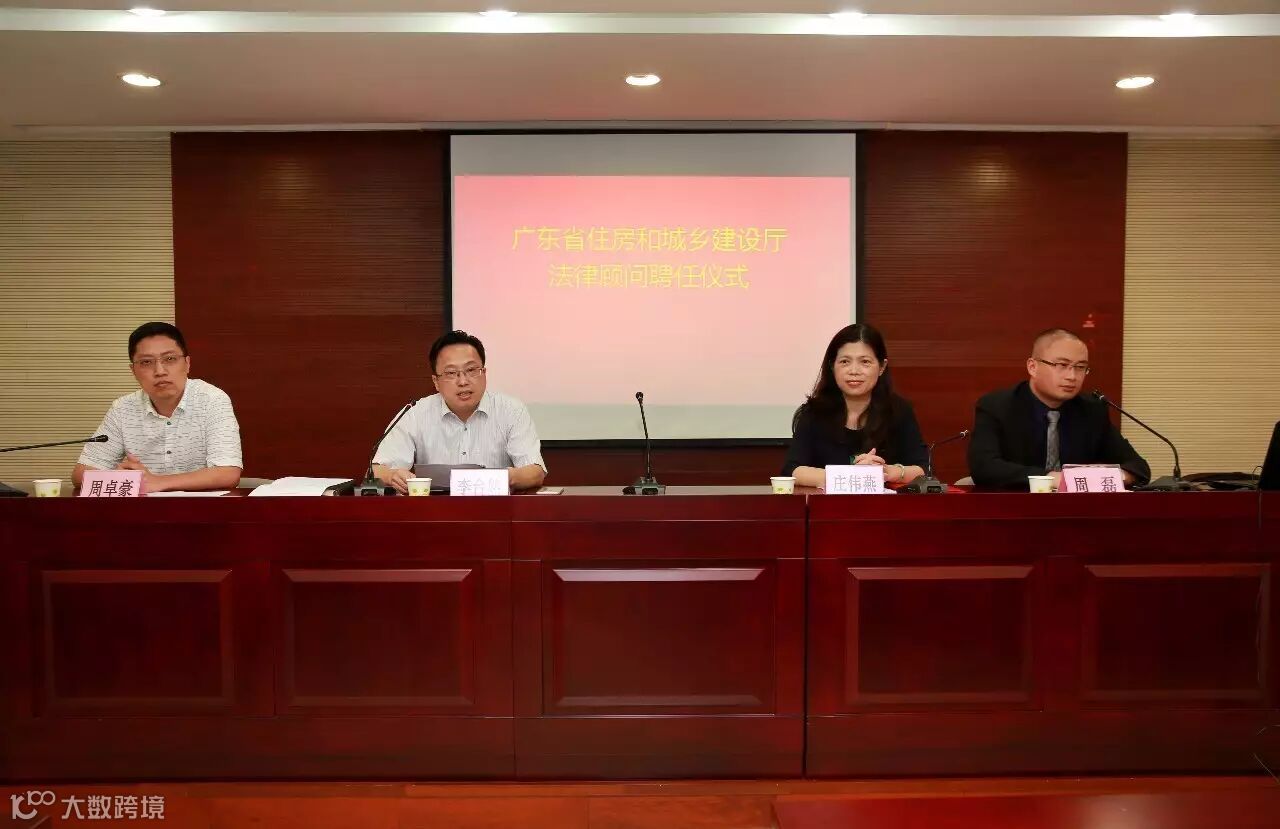 近日,广东省住房和城乡建设厅(简称“省住建厅”)隆重举行了法律顾问聘任仪式,聘任广东广信君达律师事务所庄伟燕高级合伙人律师、陈樟宜律师为常年法律顾问。省住建厅李台然副厅长、周卓豪处长、广信君达庄伟燕律师、陈樟宜律师等出席聘任仪式,该厅各业务科室及下属单位主要领导、相关工作人员参加了会议。