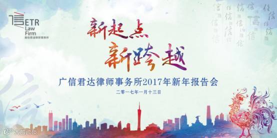 辞旧迎新,继往开来,告别充满收获的2016年,2017随春而至。2017年1月13日傍晚,广东广信君达律师事务所“新起点·新跨越”新年报告会在广州富力君悦大酒店隆重举行。