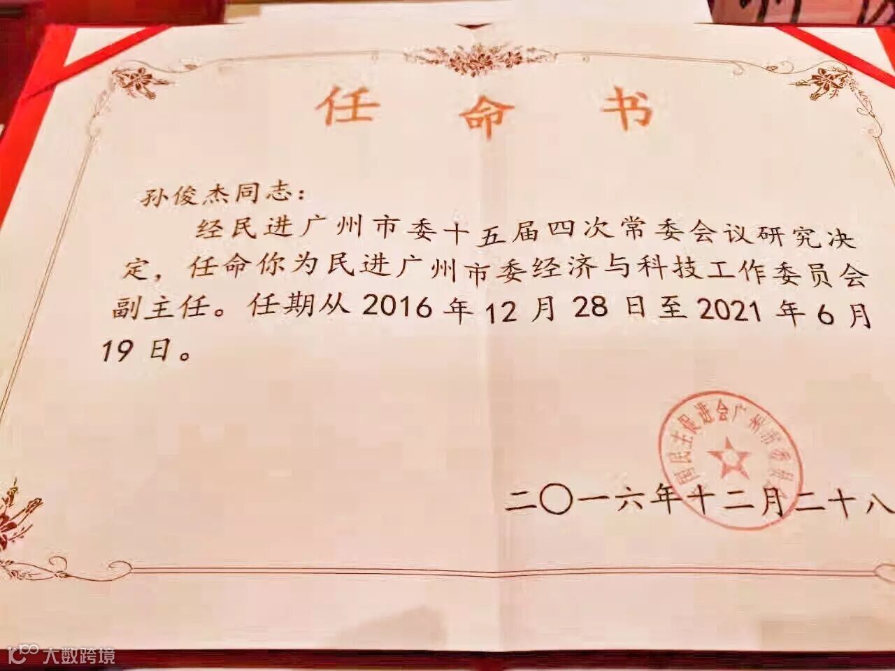 日前,民进广州市委工作委员会启动暨培训会议宣布,经民进广州市委十五届四次常务会议研究决定,广东广信君达律师事务所合伙人孙俊杰律师被聘请为民进广州市委经济与科技工作委员会副主任,任期从2016年12月28日至2021年6月19日。