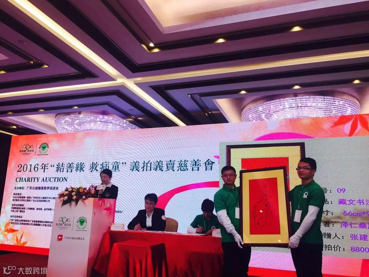 2016年11月27日下午,由广东公益恤孤助学促进会主办的2016 “结善缘 救病童”义拍义卖慈善会在广州花园酒店完美收官,来自社会各届爱心人士所捐赠的书画、雕刻、陶瓷、茶叶、茶壶、项链等门类的拍品共计39件通过义拍义卖的形式全部拍出,为在广州治疗的重症贫童募集了善款。