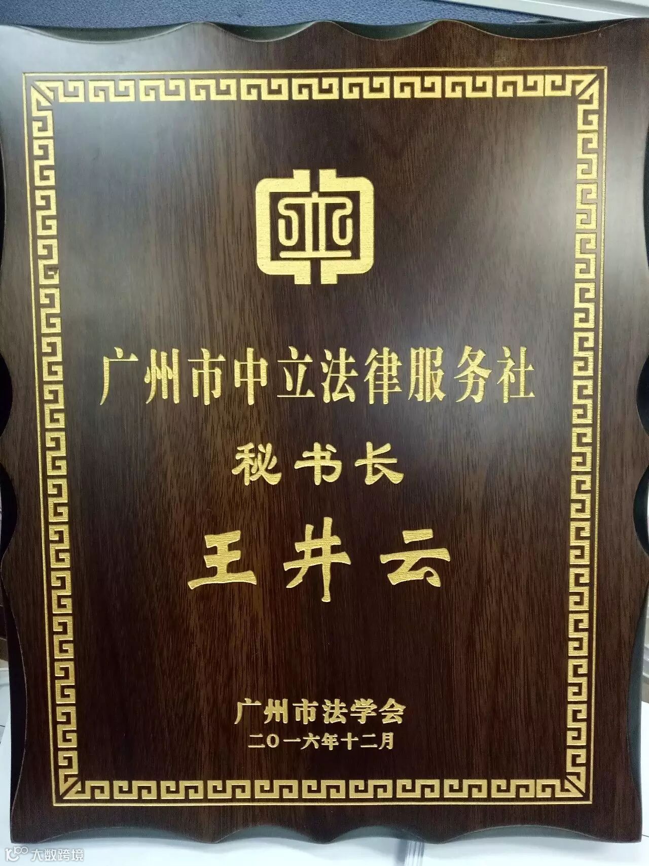 (图右)王井云律师当选为广州市中立法律服务社秘书长