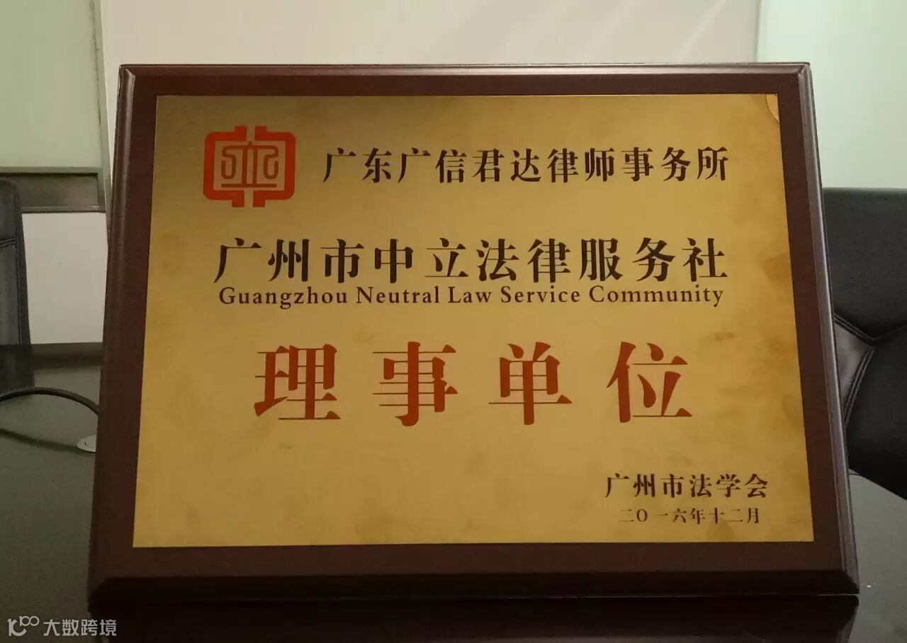 2016年12月26日上午,广州市中立法律服务社(简称“服务社”)揭幕仪式在广州市司法局公共法律服务大厅举行。广州市委政法委副巡视员、市法学会副会长焦道能,广州市司法局律管处处长沈敏,市法学会领导及工作人员,市中立法律服务社理事长、常务副理事长、副理事长、秘书长、监事长、监事,理事单位代表以及部分媒体代表共20余人出席会议。广东广信君达律师事务所合伙人王井云律师作为理事单位代表、服务社秘书长出席了会议,会议由市法学会副秘书长卢晓珊主持。