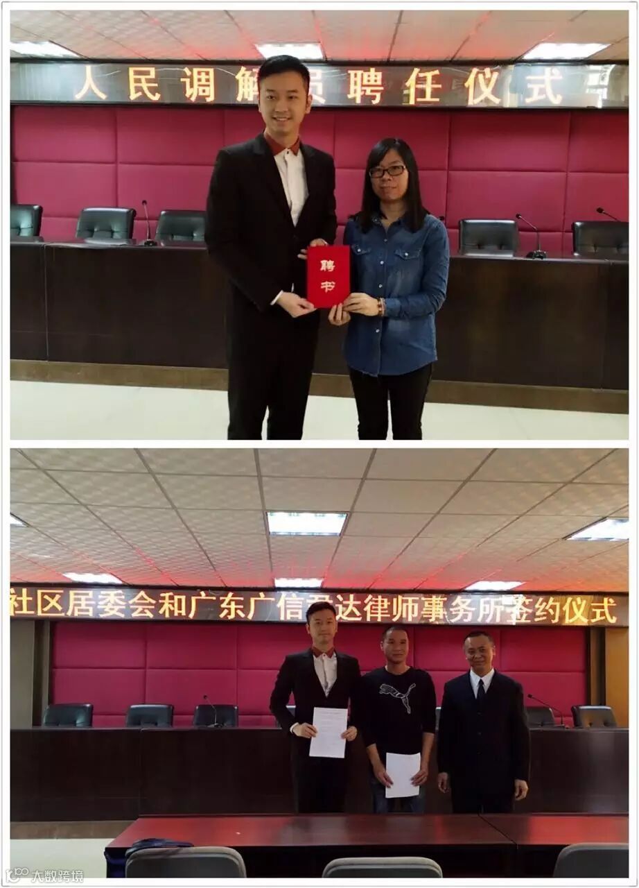方赞高律师、汪黄结律师、吴志鑫律师、叶辉伦律师分别受聘为平沙南社区、均禾社区、清湖北社区、清湖南社区的法律顾问及人民调解员。