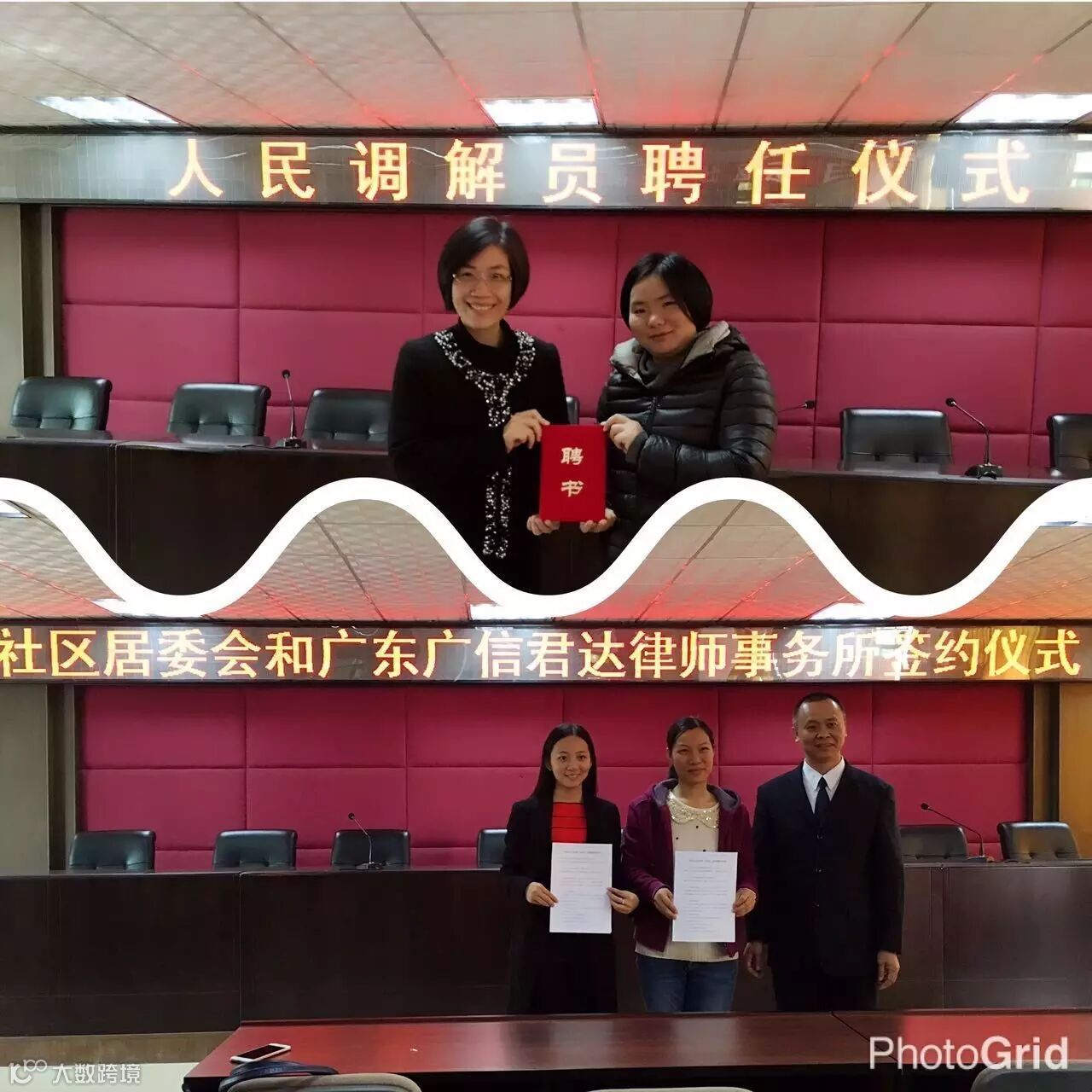 2016年12月7日上午,广州市白云区均禾街和广东广信君达律师事务所村(社区)法律顾问签约暨人民调解委员会调解员聘任仪式在白云区均禾街司法所多功能会议室举行。广信君达张哲合伙人律师,林晓纯、张伟、张凤媚、关莹、叶辉伦、方赞高、汪黄结、吴志鑫共9名律师(排序不分先后)与白云区均禾街司法所副所长张习宏及11位村(社区)主任一同参加了此次会议。