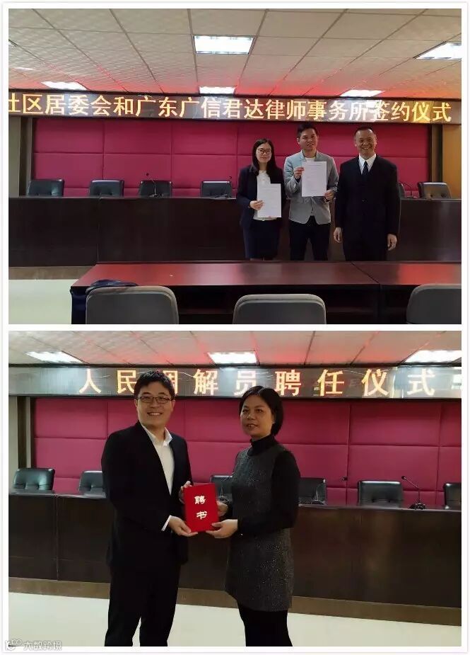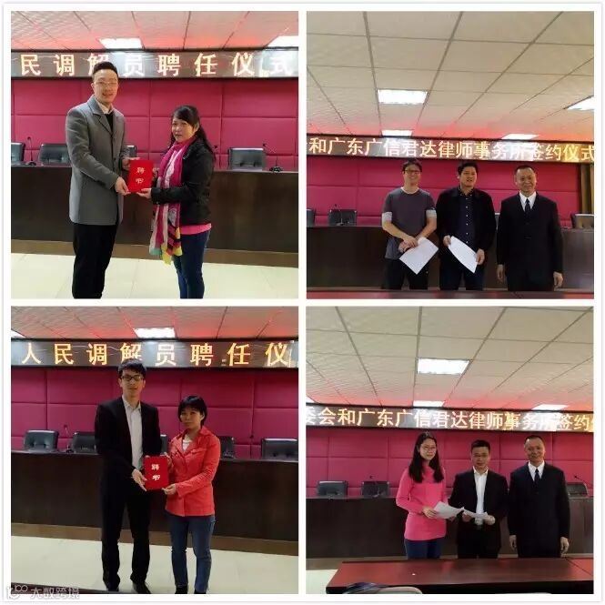 均禾街司法所每年举行一次的村(社区)法律顾问签约暨人民调解委员会调解员聘任仪式,不但增强了广信君达各位村(社区)法律顾问律师之间的凝聚力,同时也有利于白云区均禾街司法所、均禾辖区内全部11个村(社区)与法律顾问律师三方的交流与合作。