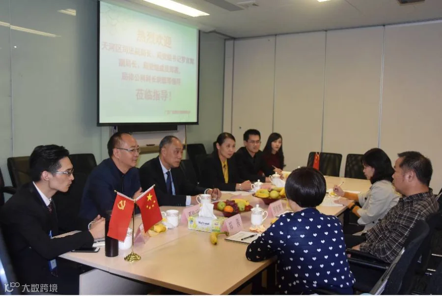 2016年11月23日下午,广州市天河区司法局局长、局党组书记罗育辉,副局长、局党组成员郑茜,局律公科科长胡懿一行3人莅临广东广信君达律师事务所,就如何更好地开展律所党建工作等事宜进行调研,受到本所党委副书记邓传远律师、党委纪律委员黄永东律师、党委组织委员黄福轩律师、党委宣传委员谢捷律师,以及业务品牌部主管蒋利等的热情接待。