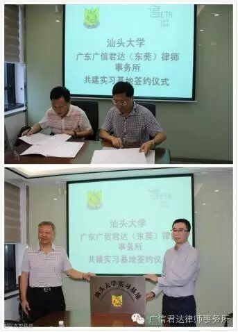 2016年8月18日上午,广东广信君达(东莞)律师事务所(简称“广信君达东莞分所”)与汕头大学举行共建实习与就业基地的座谈会暨签约仪式。汕头大学副校长、博士生导师温小波教授,汕头大学法学院院长、博士生导师怀效锋教授,法学院党支部书记、学生事务总管、高级职业指导师苏文记,汕头大学法律系主任陈瑞林,汕头大学教务员倪向东,广信君达东莞分所主任陈清才律师,广信君达东莞分所高级合伙人、汕头大学东莞校友会会长卫柱梁等出席本次会议。
