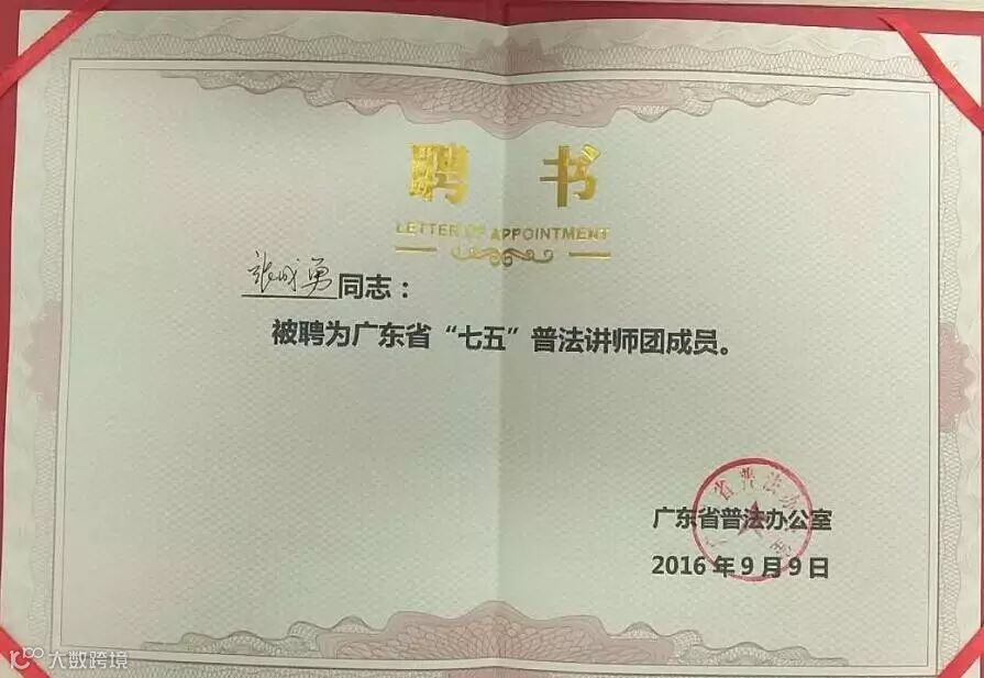其中,广东广信君达律师事务所合伙人张成勇律师凭借过硬的专业知识、良好的法律素养和丰富的实践经验入选此次“七五”普法讲师团,为我省的普法宣传工作作贡献。