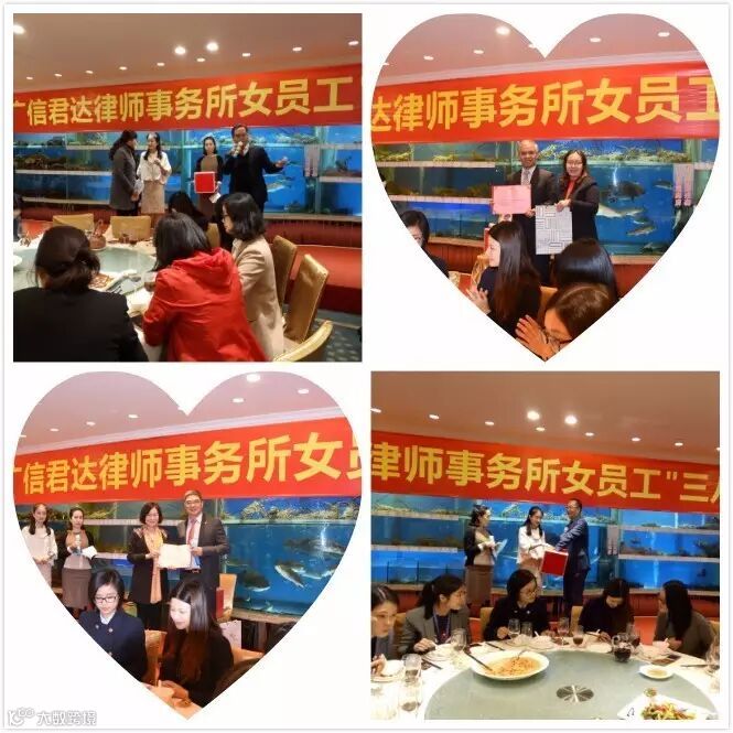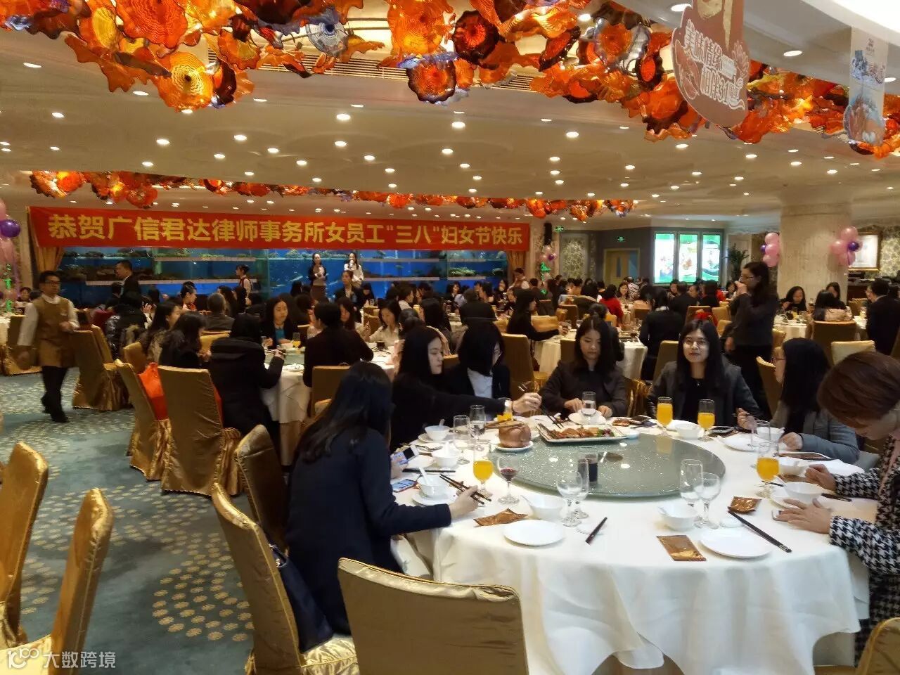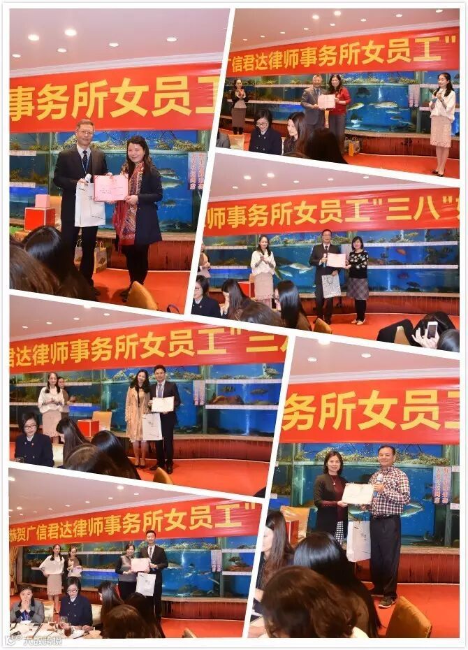2017年3月8日中午,广东广信君达律师事务所2017年三八妇女节系列活动之“女员工新春品茗会暨十佳绅士颁奖仪式”在南海渔村举行。活动由李晓月律师、袁璐律师主持,本所220余名女员工及王晓华、邓传远、王国安、全朝辉、刘善巧、陈伟雄、宋福信、张哲、黄永东、章勋、黎志军(按姓氏笔画排序,姓氏笔画相同的,不分先后)等十一位十佳绅士或代表参与了本次活动,现场气氛热烈,活动效果十分良好。