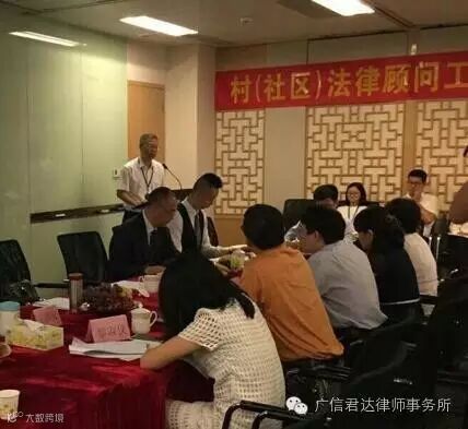 本所合伙人会议主席黄永东律师在会议小结中表示,在省、市、区、街道各级司法行政机关、省市律师协会的指导、支持以及广信君达人的共同努力下,广信君达近两年的村(社区)法律顾问工作取得了较为显著的成绩。展望未来,广信君达将一如既往地开展、深化村(社区)法律顾问服务工作,充分发挥党团组织的政治核心作用和广大党员、青年律师的先锋模范作用,提倡并鼓励更多的律师加入到村(社区)法律顾问工作中来,甘于奉献,乐于奉献,把工作做得更好。