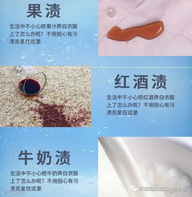 在清洗之前,将本产品喷在污渍上,如污点,葡萄酒斑迹等,