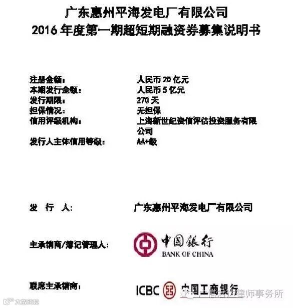 经中国银行间市场交易商协会文件批准,广东惠州平海发电厂有限公司(简称“平海电厂”)2016年度第一期超短期融资券,于2016年7月21日在全国银行间债券市场成功公开发行。平海电厂此次成功注册可发行的债券总额为人民币20亿元,分期发行。第一期已成功发行的总额为5亿元,票面利率为2.87%。