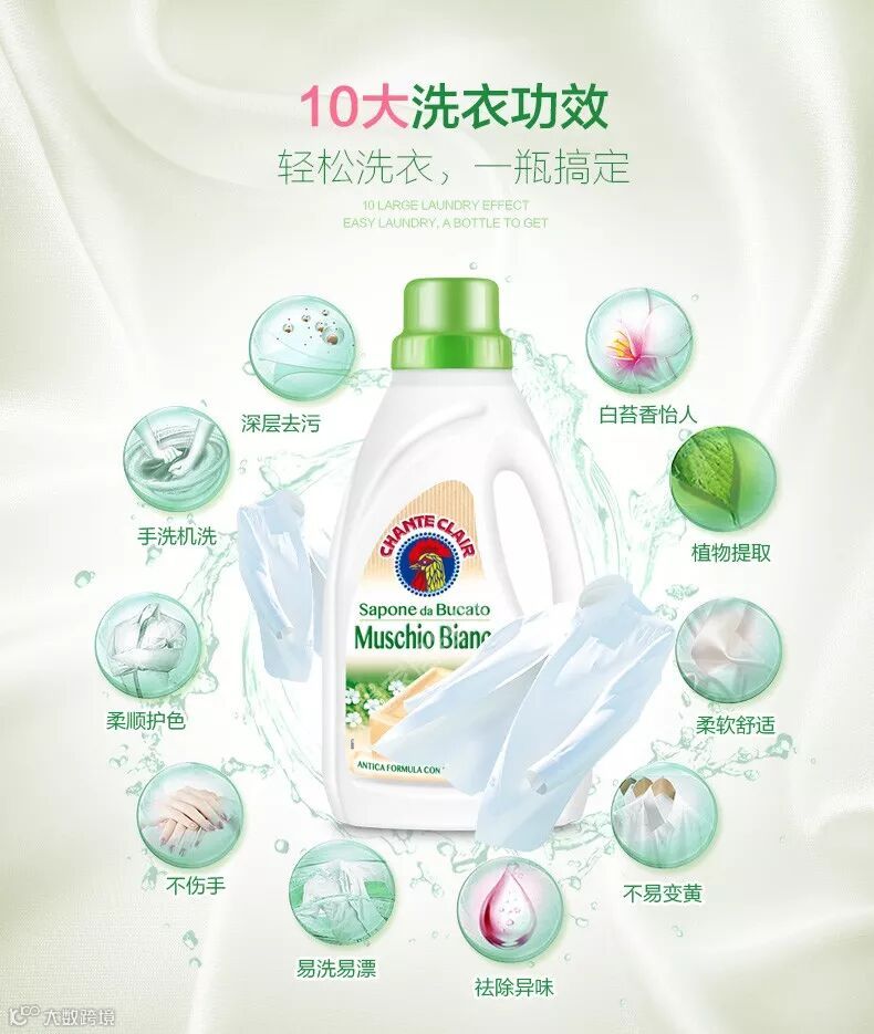 意大利大公鸡头洗衣液分为两种香型,马赛香型、白麝香型,都是1L装,用个一年半载的,绝对没有问题的。棉麻织物、真丝、毛衣、牛仔等多种衣物原料,统统都能清洗。