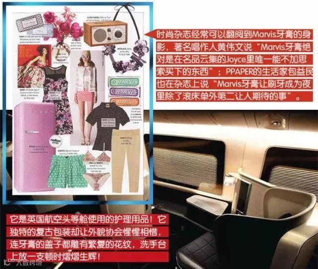 同样也是英国航空头等舱使用的护理用品,