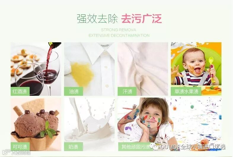 能够深入纤维,清洁顽固污渍。什么墨水渍、油污、水果渍、口红、饮料、汗渍,统统不在话下。其中的植物成分能够呵护衣物纤维,使衣物亮白柔软如新。