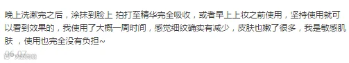 ❶ 使用过程,建议用轻拍方式让面部吸收,不建议用按摩的方式,会容易出现“搓泥”现象而影响吸收。