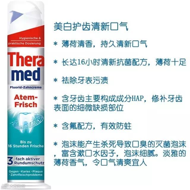 正如上面网友说的,Theramed牙膏的特点就是:刷的干净、泡沫细腻、颜值高!