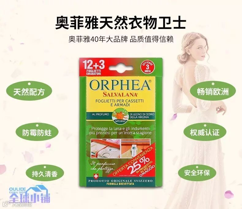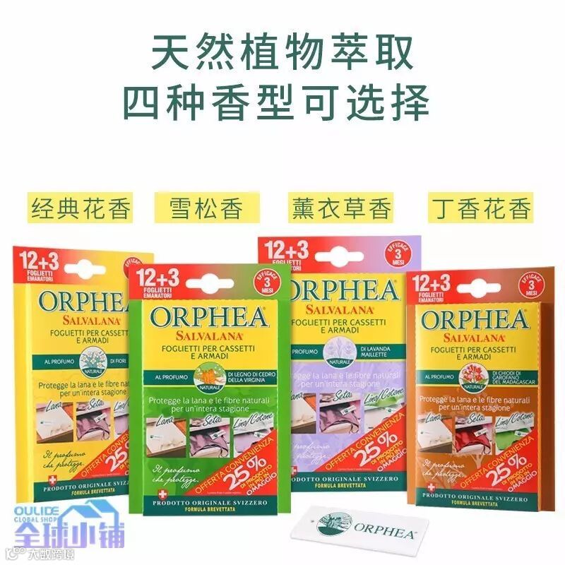 【OULIDE&全球小铺】Orphea衣服清香片,一盒12片,天然植物萃取,不含任何添加剂,清香逸人!独特香味让虫子 不敢靠近衣物,又让香味持久,打开衣柜穿衣出门,人未到,香先来!