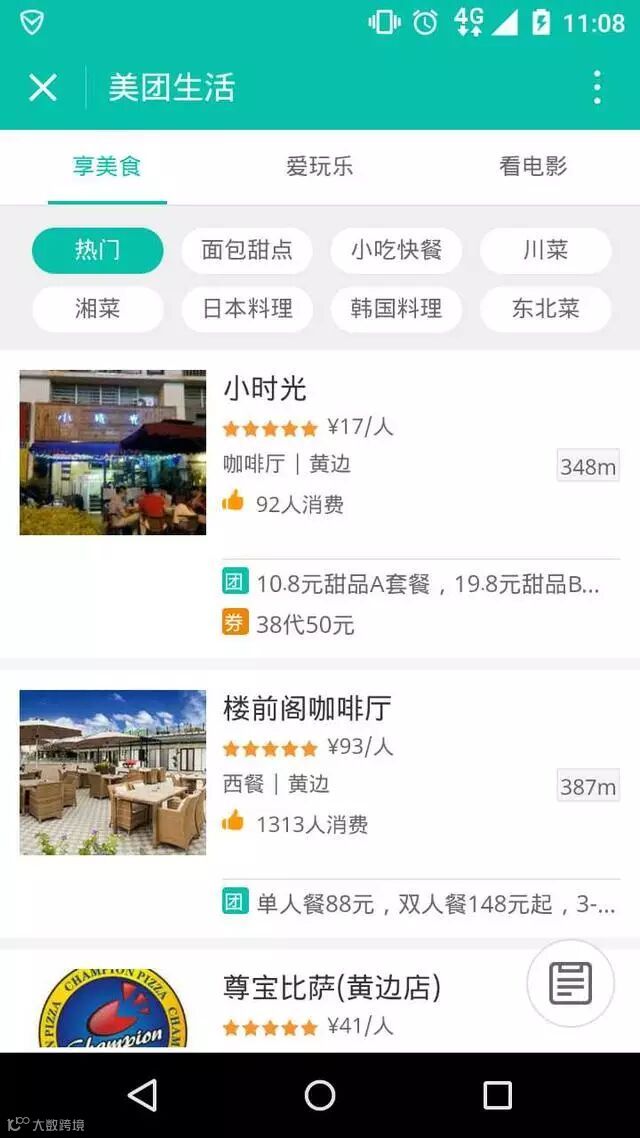 唯一的不足是不能广泛搜索,切换地点,美团只是根据手机定位,来显示当前位置附近的一些商家。