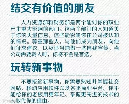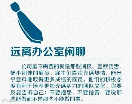 相比职业技能,雇主们更看重员工的品质和习惯:1.让自己聚焦在公司的成功上,而非仅仅个人的成功;2.主动承担更多工作;3.远离办公室闲聊;4.不要拒绝新事物……记住过来人的提醒,让你的老板离不开你!