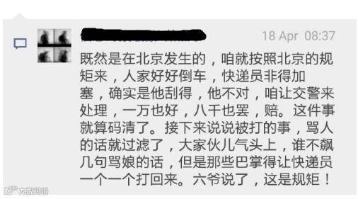 @RJ7欣欣:就算是快递小哥强挤不看车,谁赋予你打人的权利?你可以报警让他赔偿啊!!那我们以后刮擦,是不是把全责方打一顿就好了?我不明白,这么大岁数,怎么对别人没有基本的尊重呢?