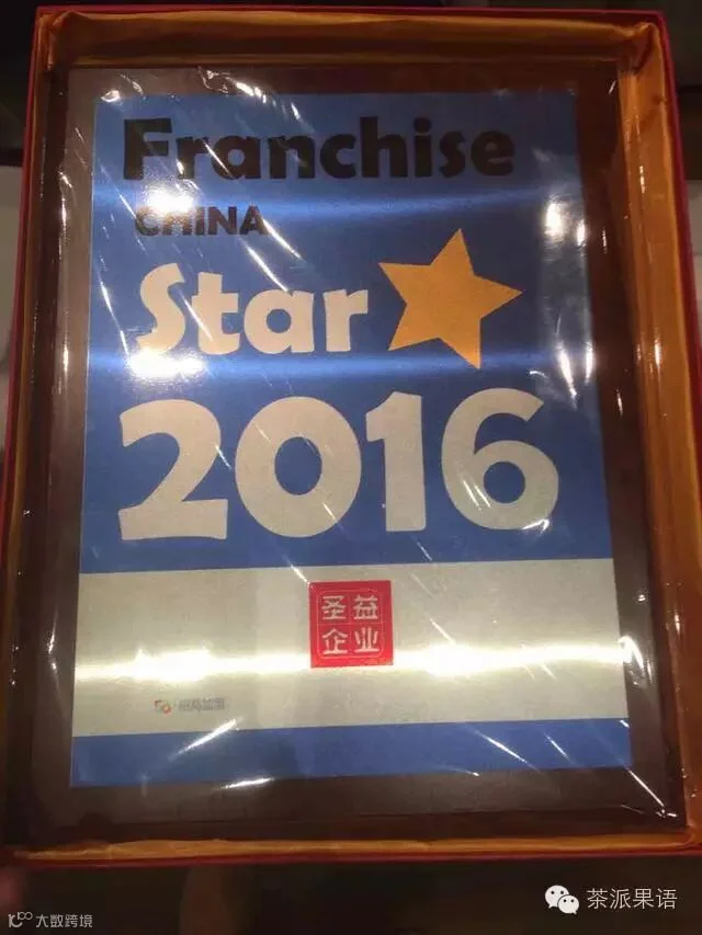 11月24日,第九届中国高成长连锁行业峰会暨2016年度中国高成长连锁50强颁奖典礼在北京千禧酒店圆满落幕。圣益集团旗下代表品牌"茶派果语"在众多知名连锁品牌中脱颖而出,荣获“2016年最具潜力连锁之星”奖。