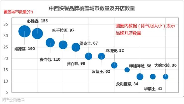 2、全国连锁中西快餐品牌覆盖城市及开店规模列举