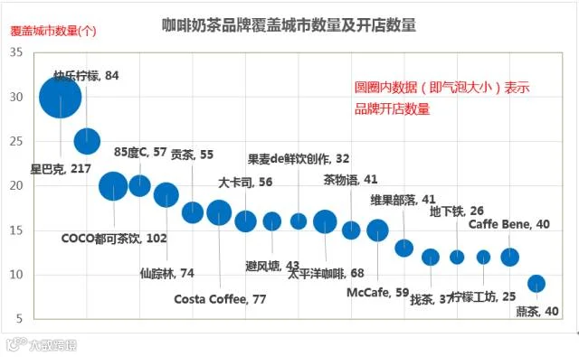 1、 全国连锁休闲餐饮覆盖城市与开店规模列举