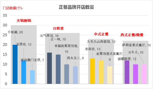 各类正餐品牌在既定区域内