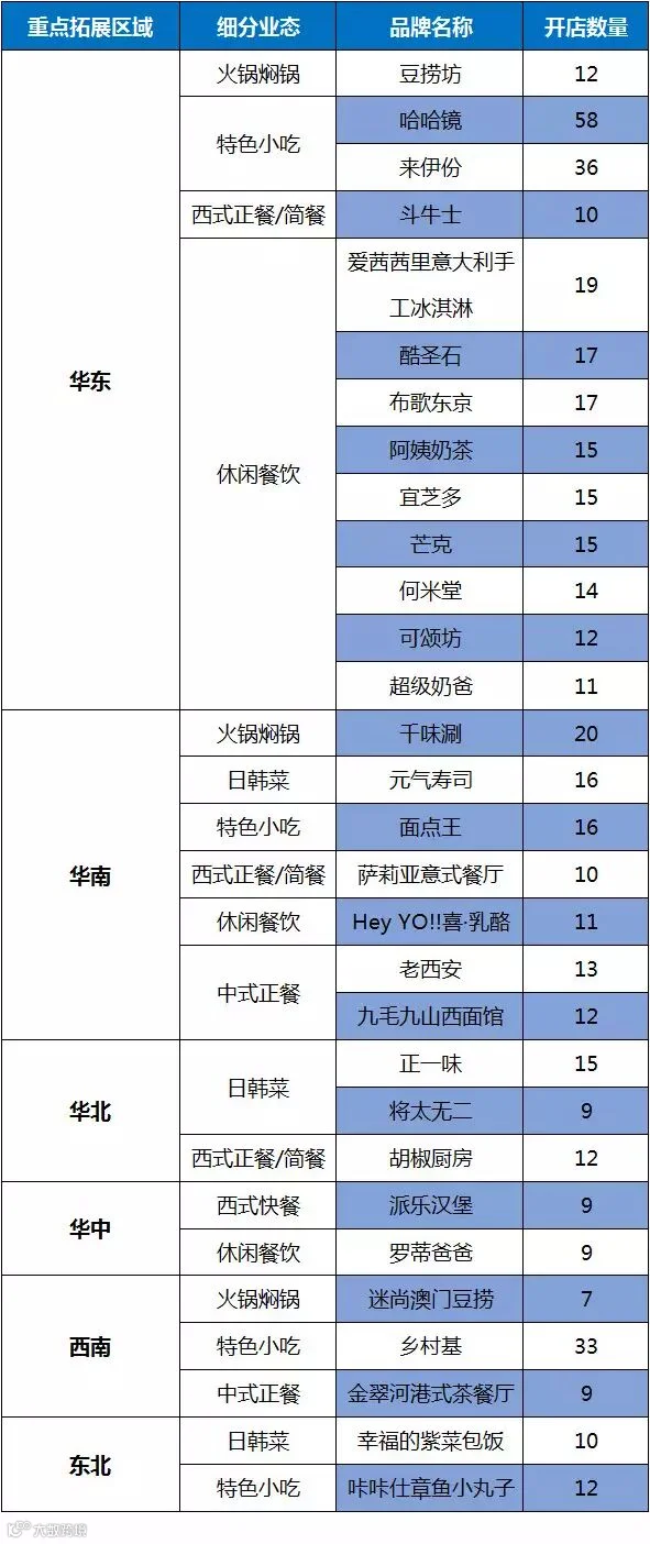 4、附表:6大区区域连锁品牌列举