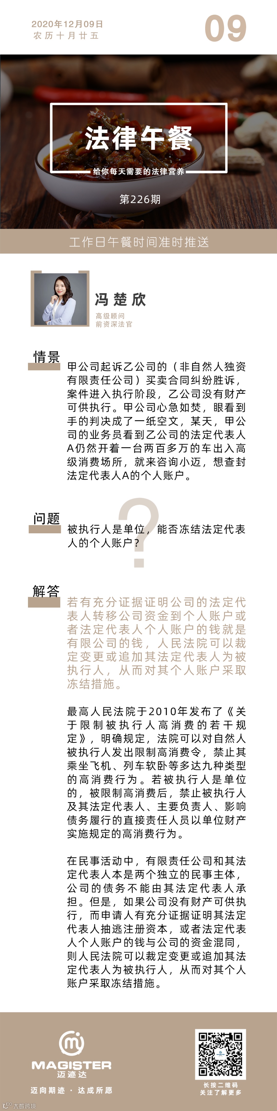 《关于“失信被执行人是单位的,建议冻结法定代表人的个人账户”问题的答复》