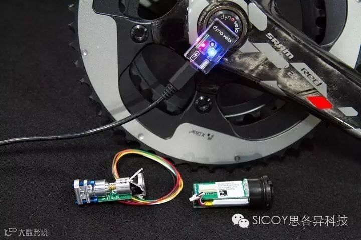 中轴功率计目前分为两类,一种是直接在中轴内壁粘贴应变计,例如Axpower,而另一种是在中轴内部固定一个感应应变的机械结构,然后测量这个机械结构的形变,例如国外的DynoVelo(图4)。我们认为,直接贴装的安装方式具有更高的精度和稳定性,和后花鼓功率计的原理一样,扭矩的测量非常干净,干扰信号少。
