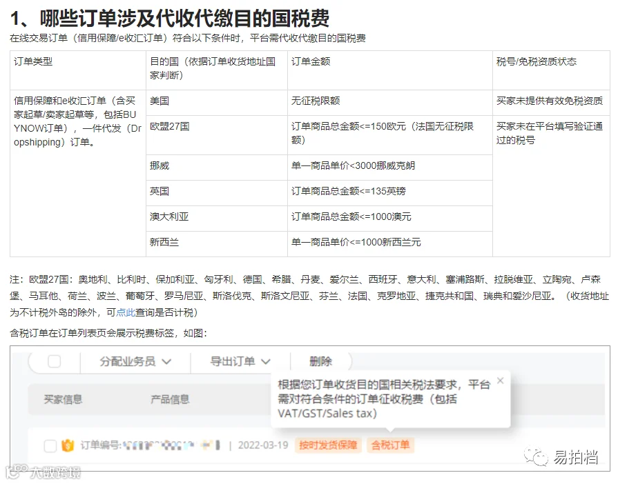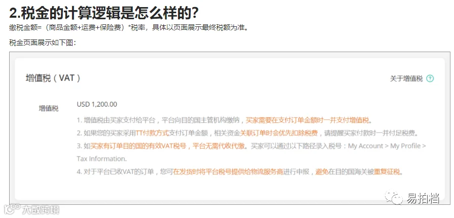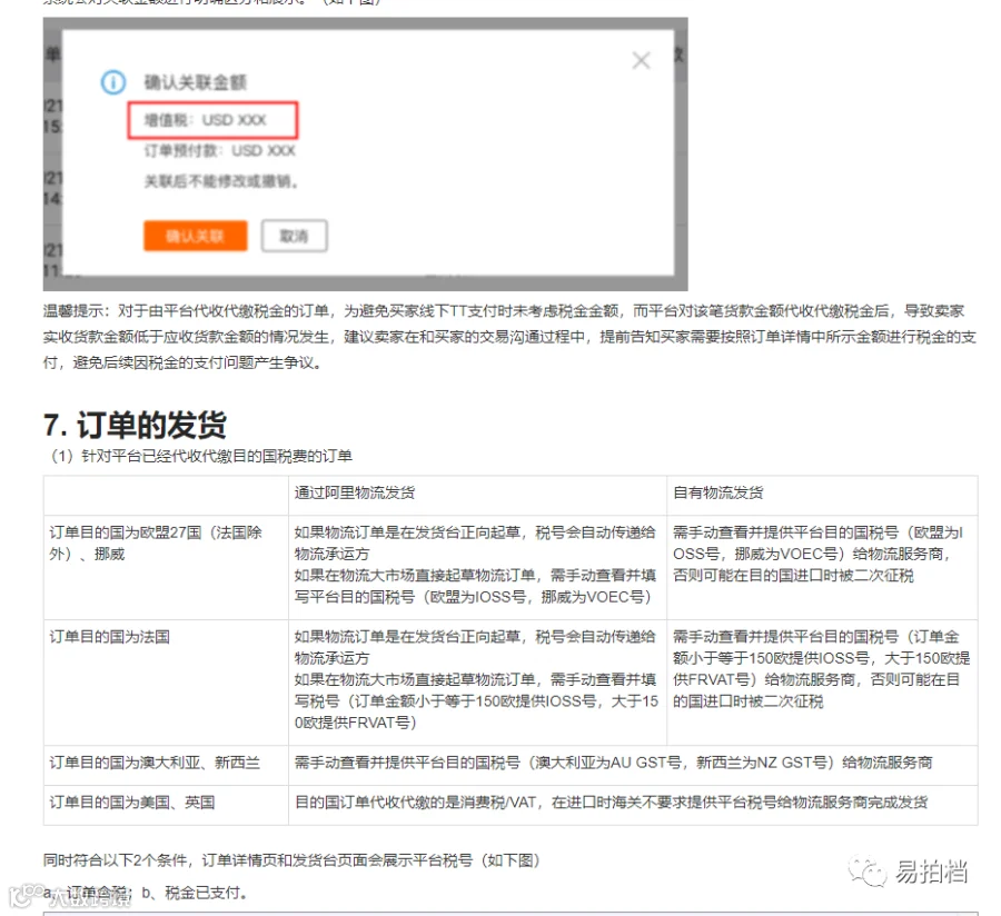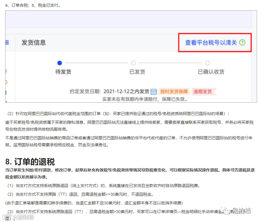 对于由阿里巴巴国际站代收代缴税金的订单: