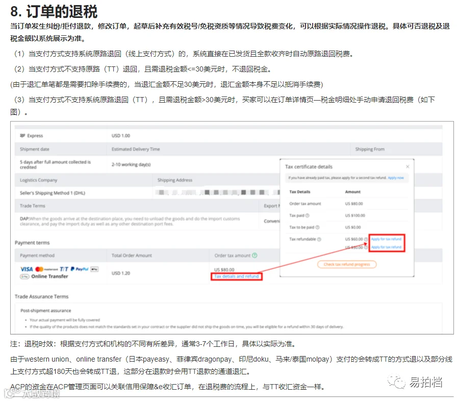 l 若支付后修改导致税金减少,平台会在订单全款收齐且已发货后根据买家支付方式不同相应完成退税流程。