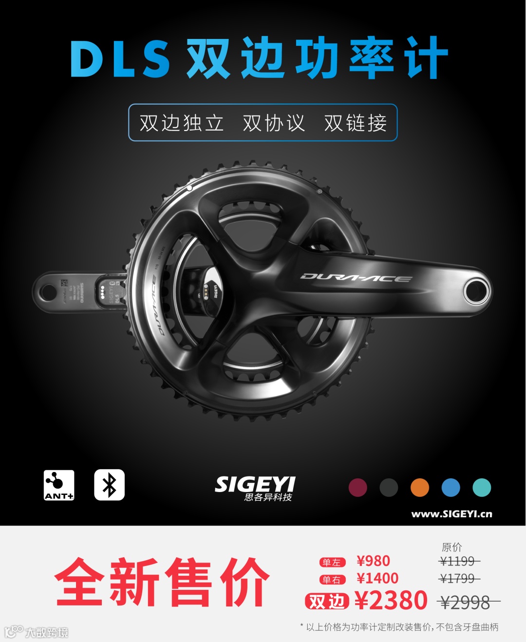 即日起,思各异旗下的AXO盘爪功率计以及DLS独立双边功率计执行全新零售价。AXO盘爪全规格统一零售价为2280元人民币!DLS独立双边功率计改装仅需2380元,980元即可改装单左腿。