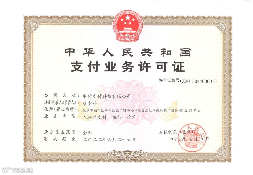 中付支付科技有限公司成立于2007年,注册资本16100万人民币,是国内领先的独立第三方支付企业,根据《中国人民银行信息安全管理规定》,中付电子支付系统符合《支付卡行业数据安全标准》V1.2的相关要求,获得中国信息安全认证中心颁发的《支付系统安全认证证书》。公司的宗旨是为各类企业及个人提供安全、便捷和保密的综合电子支付服务。