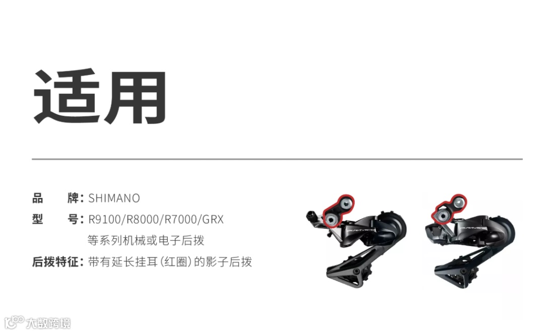 注:如果你想用一体式直装尾钩,请确认自己的后拨是带挂耳的Shimano后拨,如下图所示——
