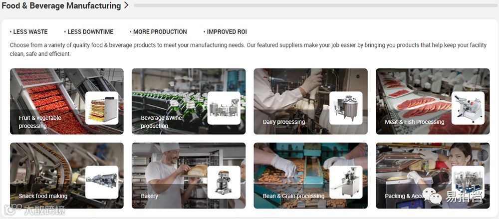 4. 食品&饮料加工专区是针对食品、饮料加工生产的应用场景专区,优先选择食品、饮料加工机械及辅机等相关设备品类,品类主要包含:食品饮料机械
