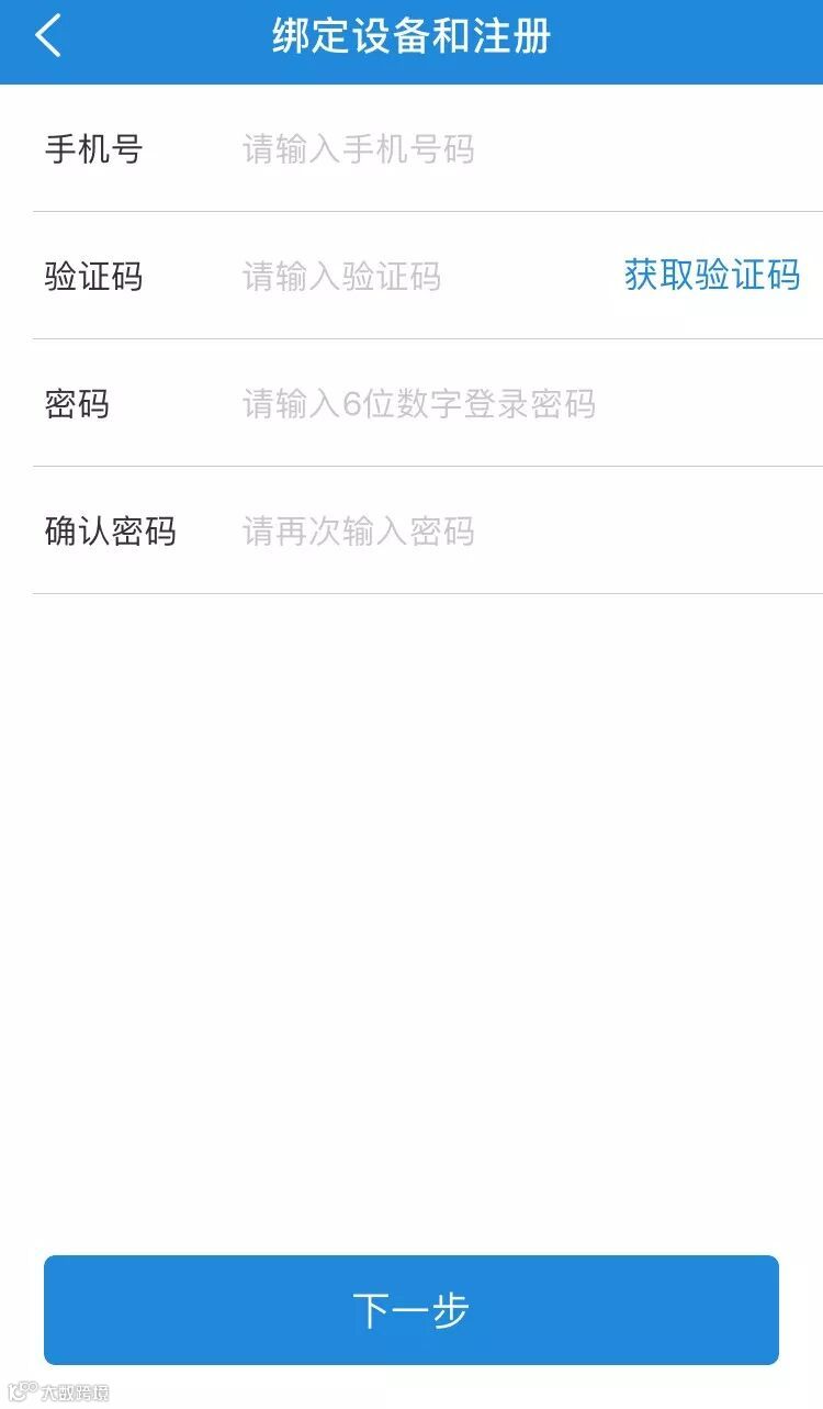 1.连接蓝牙后跳转到“绑定设备和注册”填写注册信息。
