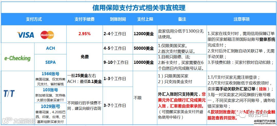 1.目前,除超级信用证外,其他三种支付方式需要费用和时间如下: