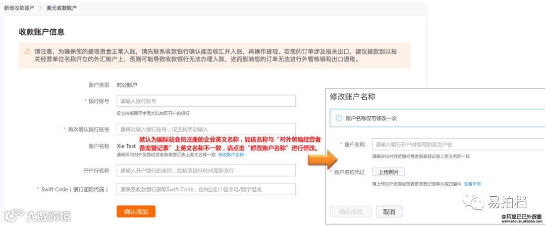 3.美金对公账号提现时,历史已上传的与外贸经营者备案登记表不一致的英文名称不修改会有什么影响?
