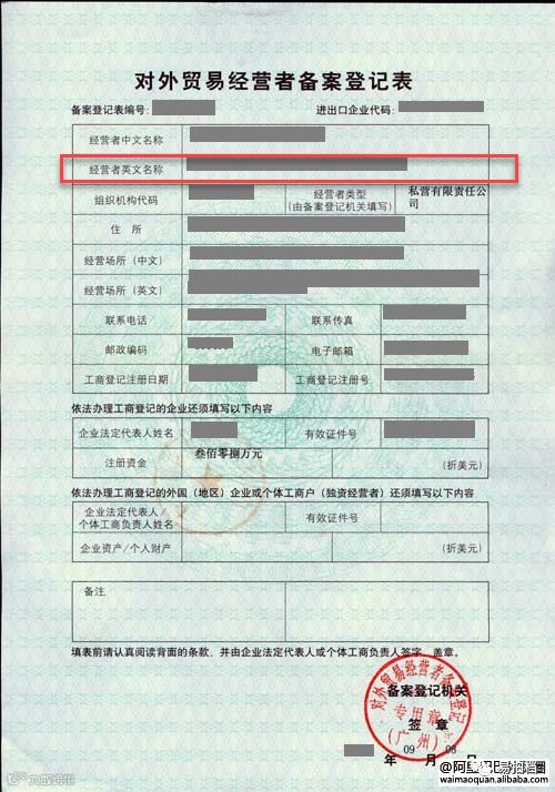 系统原始英文账户名称,默认为国际站会员注册的企业英文名称,供应商可以且只能修改一次。修改时,上传“对外贸易经营者备案登记表”。