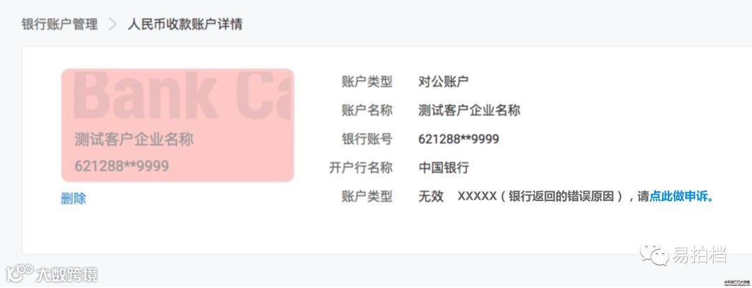 w如果审核不通过,则显示账户类型无效,并显示银行返回的错误原因。