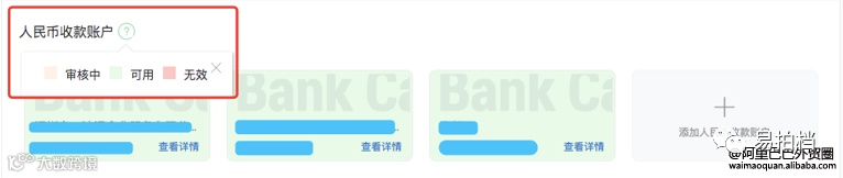2)提交新增人民币对公提现账户申请后,银行和外管局将对账户进行审核,审核时间一般2-4个工作日(账号有异常可能时间会比较长,具体视账号异常原因而定)供应商可到MA后台-资金&金融服务-提现帐号管理-人民币收款帐户查看账户审核情况: