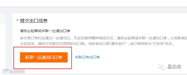 起草出口订单成功后,刷新发货台页面或订单详情页面,系统自动将该笔一达通出口订单关联到此笔信用保障订单中,一达通出口订单通关完毕后,信用保障订单状态也会更新为待买家确认收货。