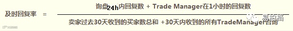 其中TradeManager及时回复率:30天内收到的所有TradeManager咨询(去除同一天内的重复咨询、排除注册地/发送地为中国大陆的咨询、去除拉入黑名单的咨询、去除买家是通过手机端发送的消息)中,在1小时内有被供应商回复(去除自动回复)的占比。