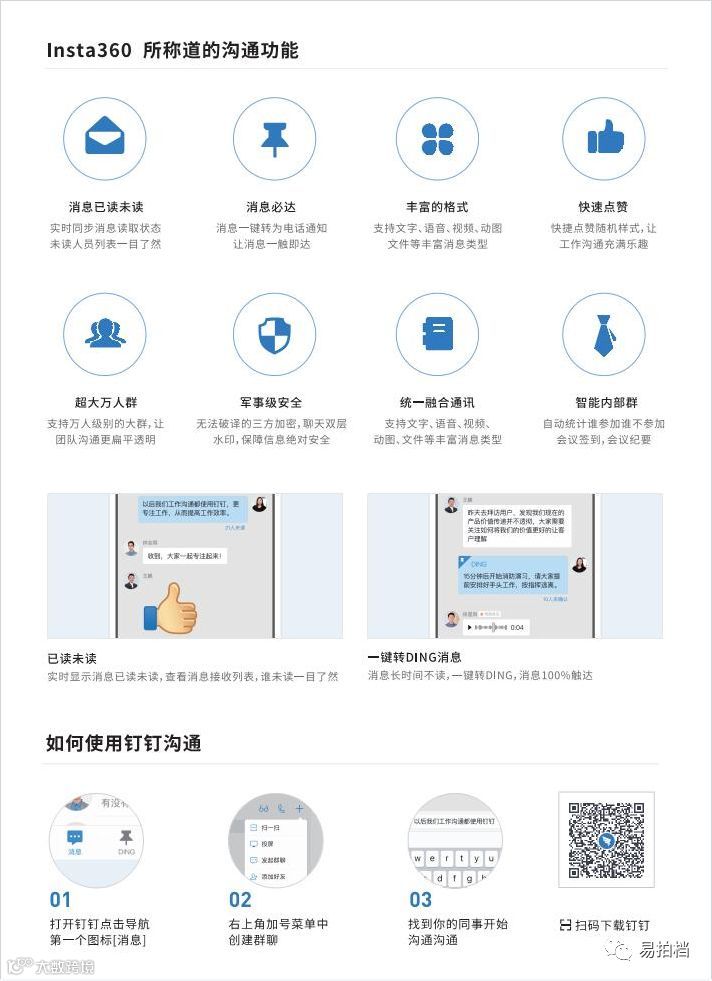 钉钉针对痛点,开发已读和未读功能,群里多少人未读,多少人已读,老板手机一眼看到,如果重要信息可以ding一下,可以短信,电话语音再次通知员工,确保每一个员工收到信息,并得到反馈,员工没有借口说没收到。
